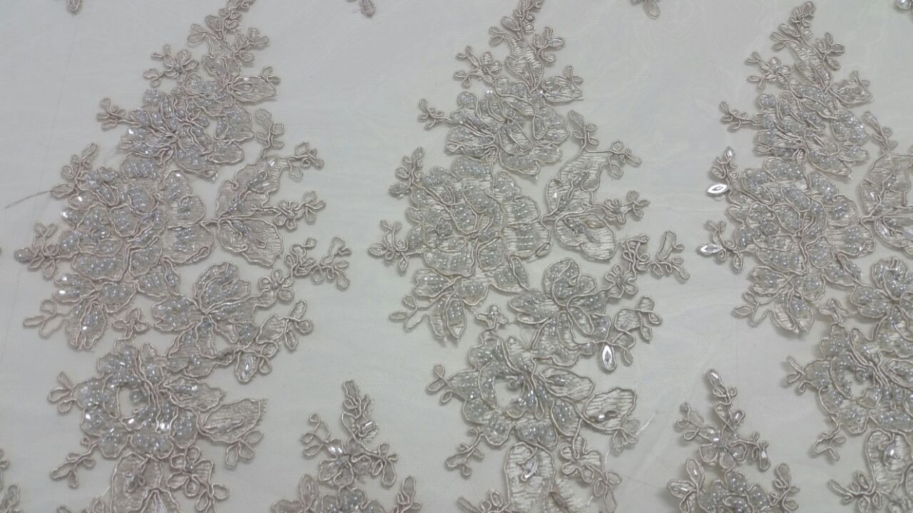 Chegou! Renda bordada off white com borda larga super trabalhada com pedrarias e contas. Exclusividade no Brasil!